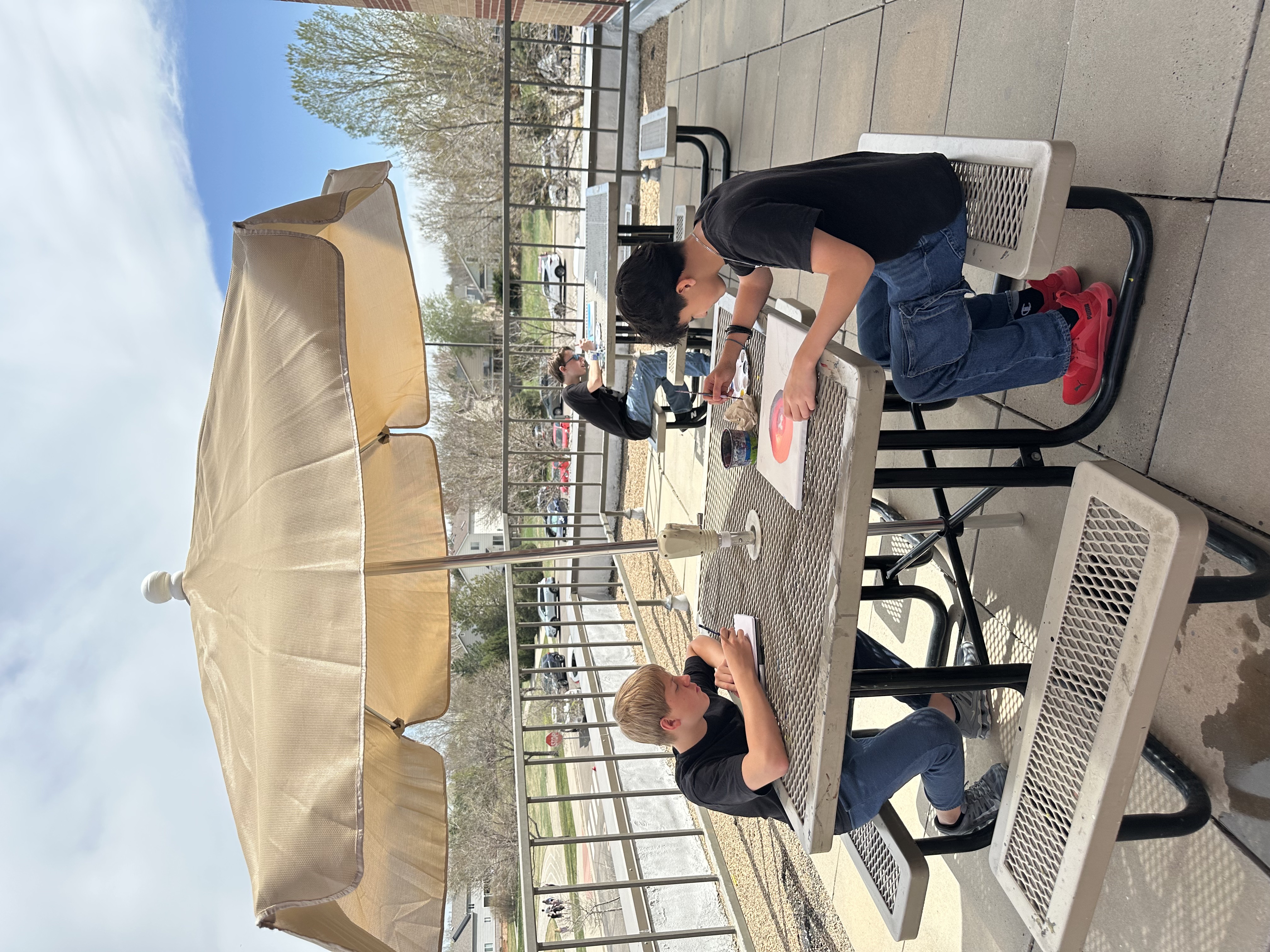 Our art students took advantage of the beautiful spring weather by working outside on their artwork earlier this week, before the snow arrived.