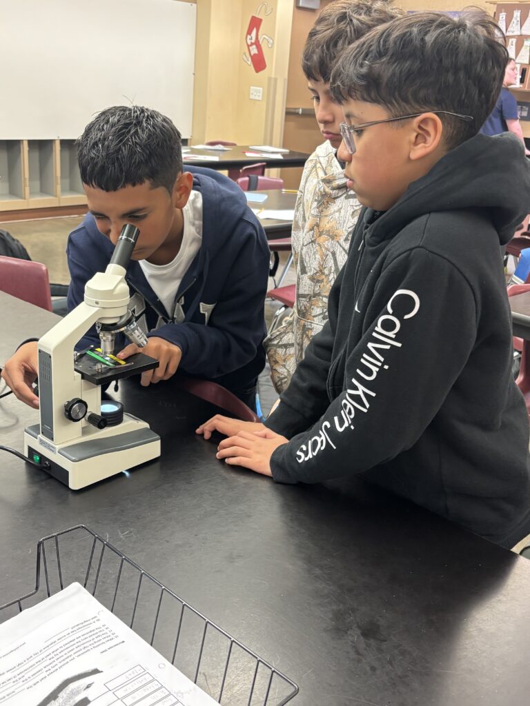 Ms. Rago and Ms. Luutran’s 7th grade scientists checking out the microscopes.